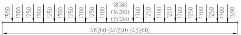 6.9.46.2. Транспортер при длине перевозимого груза 13,5 м с 4-осными вагонами