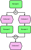 Если завершение выполнения функции должно инициировать одновременно несколько событий, то это обозначается с помощью оператора «И», следующего после функции и перед событиями.