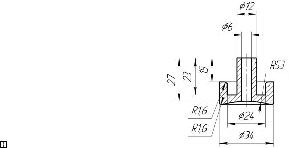 вточку перетину радіуса дуги 53 мм із крайньою вертикальною лінією (коор- дината по осі X – 17 мм). Після захоплення курсору пасткою клацніть мишею і побудуйте дугу проти годинникової стрілки до осі симетрії (координата по осі X рівна нулю). Зафіксуйте положення, клацнувши мишею (рис. 30).