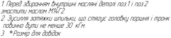 3.4. Проставте габаритні і функціональні розміри, позначте позиції, на- пишіть технічні вимоги і заповніть основний напис. Текст технічних вимог представлений на рис. 37.