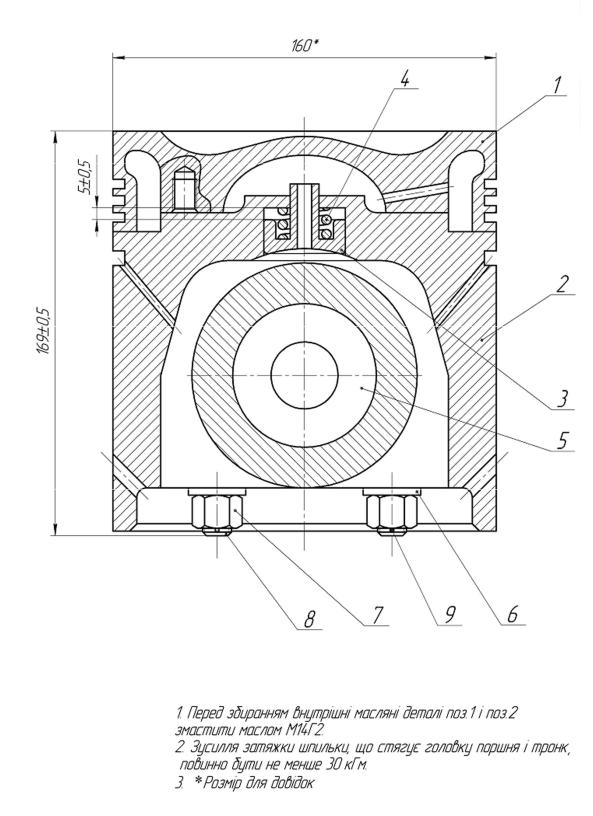 Для складального креслення поршня, побудованого в лабораторній роботі