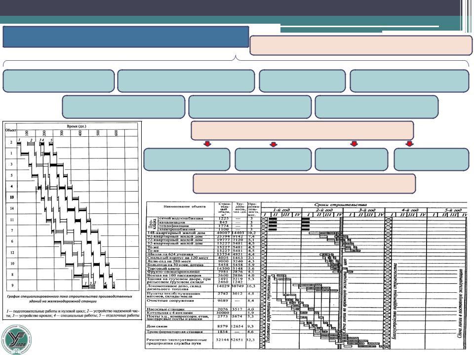 стен, перекрытий, лестничных маршей, кровли); 6 – строительство зданий и сооружений на станциях (отделочные и специальные работы)
