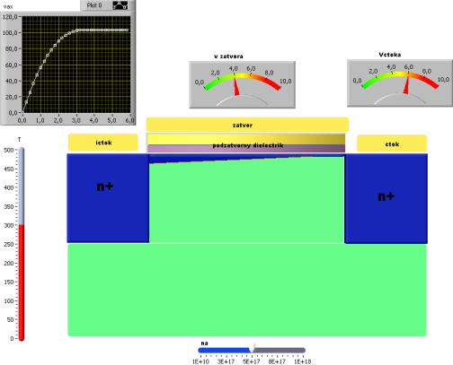 Входные параметры могут быть изменены путем ввода их численных значений с клавиатуры (при этом курсор должен быть установлен в поле цифрового индикатора изменяемого параметра) или с помощью мыши: курсор устанавливается на какой-либо элемент конструкции или на элемент управления (например, на край затвора, на движок, регулирующий уровень легирования, на стрелку прибора), а затем размер затвора, уровень легирования или напряжение изменяют, перемещая курсор в нужном направлении при зажатой левой кнопке мыши.