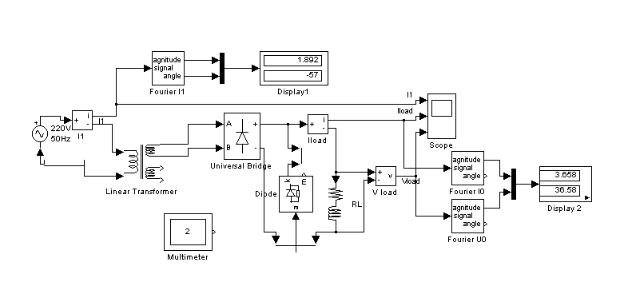 Рис.1.3 Модель однофазного неуправляемого мостового выпрямителя