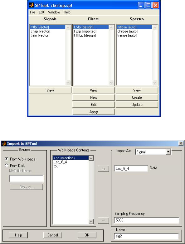 Рис.3.8 Окно SPTool пакета расширения Signal Processing Toolbox