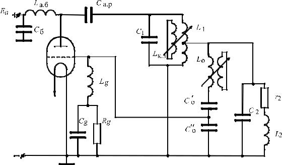 На рис. 6 представлена принципиальная схема промышленного генератора ВЧГ1-25/0,44, имеющего один колебательный контур.