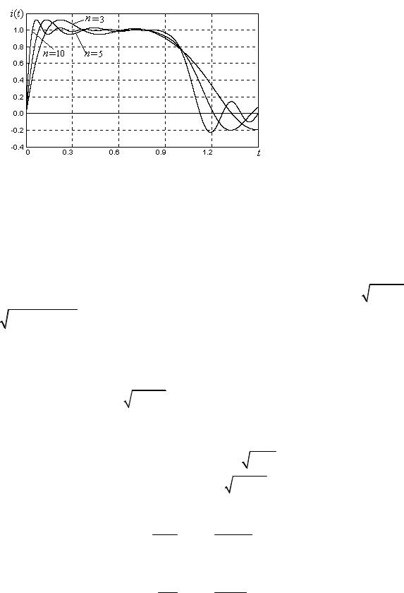Форма импульсов, получаемых с помощью ОИЛ при различном числе звеньев n, изображена на рис. 4.2. Увеличение числа звеньев приводит к уменьшению длительности фронта и среза импульса; при этом амплитуда колебаний, наложенных на вершину импульса, не изменяется, но возрастает частота осцилляции.