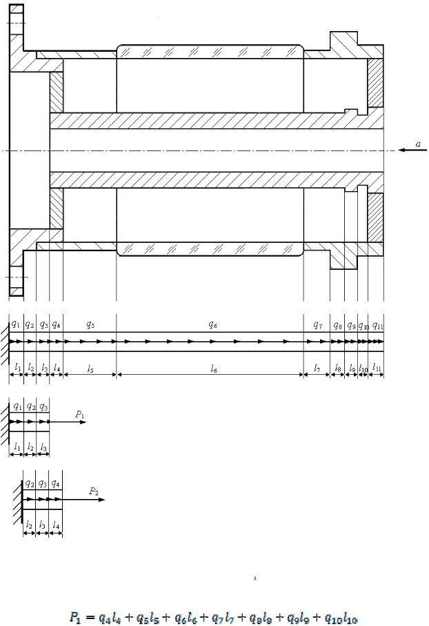Поскольку конструкция имеет цилиндрическую форму и закрепление с одной стороны, ее можно представить в виде расчетной схемы стержня с жесткой заделкой с одной стороны. По всей длине стержня необходимо определить грузовые участки