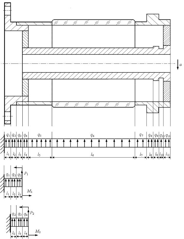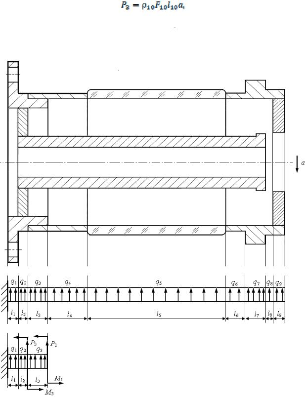 В расчете при ускорении, направленном по нормали к оси конструкции, внутренний стержень представляется отдельной силой