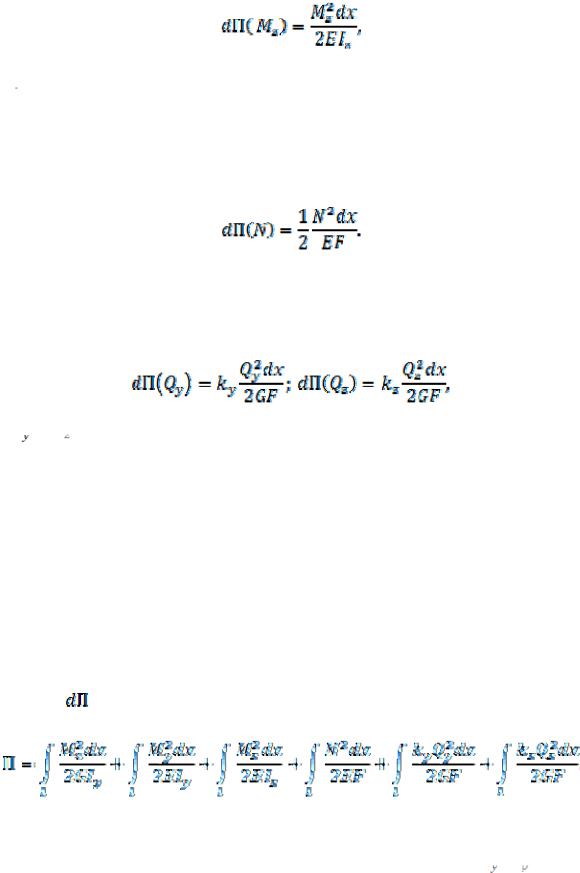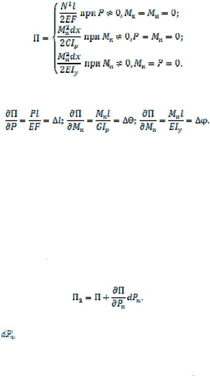 Как правило, эти слагаемые значительно меньше остальных, и ими можно пренебречь. Таким образом, потенциальная энергия деформации равна половине произведения сил или пары сил на перемещение по ее направлению в том сечении, где внутренняя сила приложена.