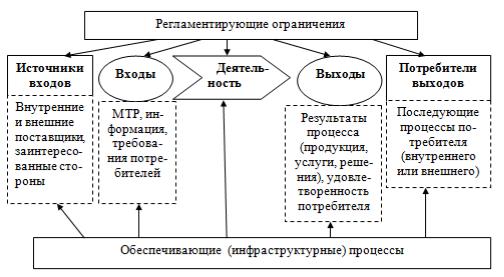 С этой точки зрения процесс есть связанный набор повторяемых действий, которые преобразуют исходный материал и (или) информацию в конечную продукцию, работу или услугу в соответствии с предварительно установленными правилами. Процессы составляют значительную часть деятельности организаций.