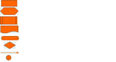 Одним из самых распространенных графических средств (инструментов) описания и наглядного представления рабочих процессов являются так называемые диаграммы потока (блок-схемы алгоритма выполнения процесса). Основные символы, используемые для графического представления диаграммы потока, представлены на рис. 4.