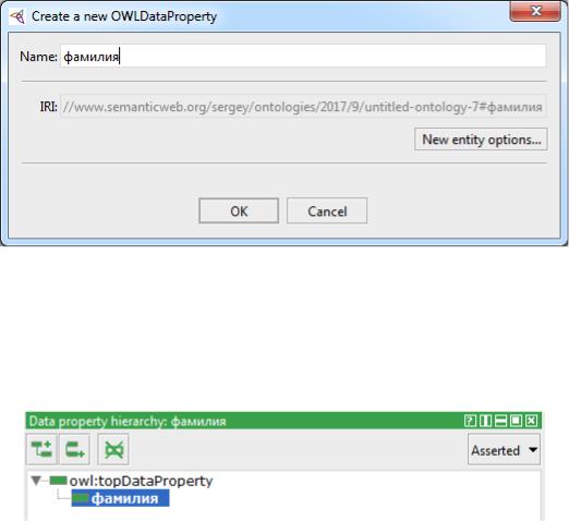 • свойства экземпляра задаются в панели Property assertions. Задайте нашему экземпляру свойства, указанные на рис. 1.18.