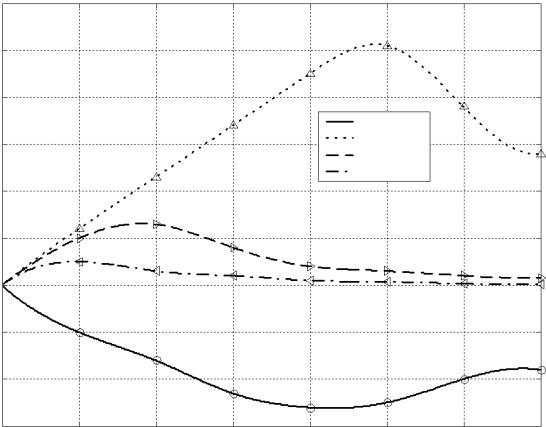 Управляемость СВП значительно меняется при действии ветра. На рис. 1.3 приведены циркуляции амфибийного СВП при действии ветра. Как видно из рисунка, действие ветра существенно меняет циркуляцию судна, которая значительно зависит от направления ветра относительно курса судна.