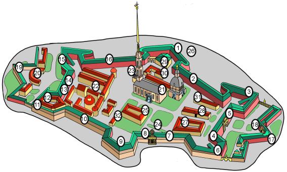 Карта Петропавловской крепости |