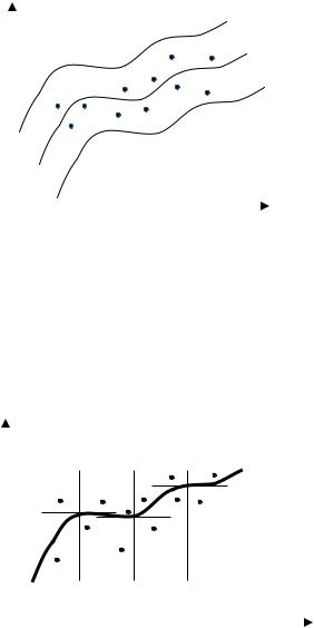 грешности исходных данных может быть лишь указание ширины полосы их разброса вокруг найденной кривой y = f (x). При этом полоса разброса не обязательно будет иметь постоянную ширину по всей своей длине и одинаковую конфигурацию (штриховые линии на рис. 3.1). Вопрос о форме полосы погрешностей должен анализироваться в каждом конкретном случае, так как одна и та же кривая с различной степенью приближения может быть аппроксимирована различными функциями (полиномом степени n, параболой, гиперболой, эллипсом и т. д.).