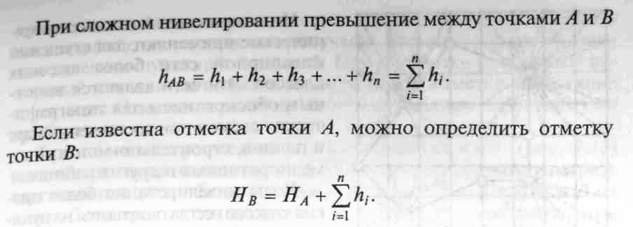 Если известна отметка НА точки А и превышение h, отметку Нв точки В определяют как их сумму: HB=HA + h.