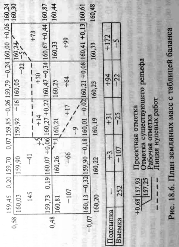 этой же цели и план земляных работ. Определив общие объемы выемок и насыпей, сводят баланс земляных масс, т.е. определяют, компенсируют ли друг друга выемки и насыпи.