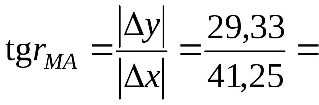 2. Вычисляют величину румба линии МА: