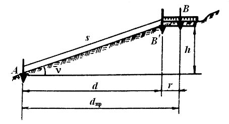 Построение линий заданной длины сводится обычно к построению и закреплению на местности наклонного расстояния s, соответствующего проектному горизонтальному расстоянию d.