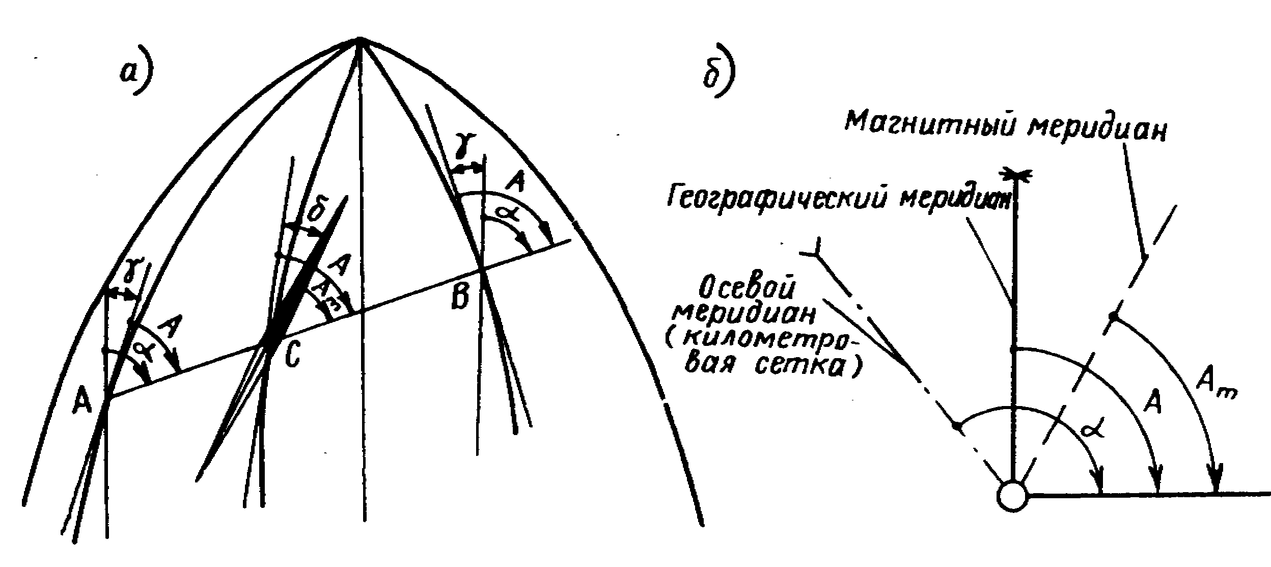 Зависимость между азимутами истинным, магнитным и дирекционным углом