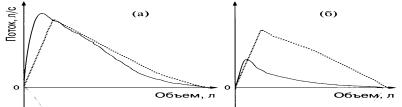 Спирография — графическая регистрация объема легких во время дыхания. Характерными спирографическими признаками нарушения бронхиальной проходимости у больных бронхиальной астмой являются следующие: