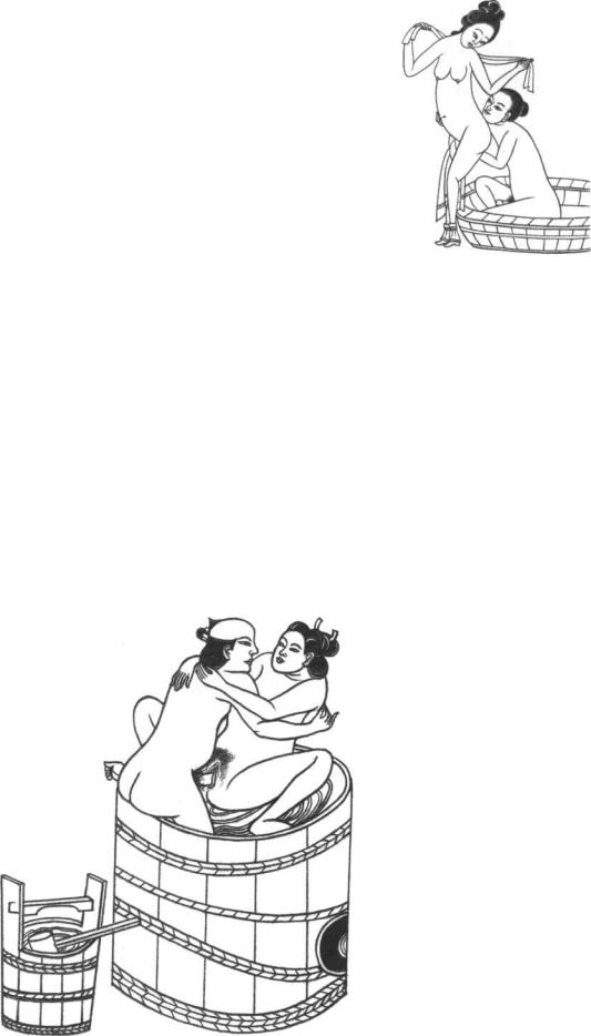 Hot tubs are very much a part of Japanese and Chinese hygiene. This humorous illustration, from a Japanese book of the late seventeenth century, shows a traditional tub in unorthodox use.
