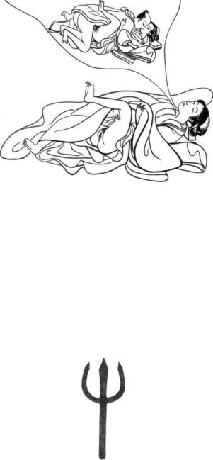 The texts of Dream Yoga suggest that dreams originate at the throat center (Throat Chakra). This illustration depicts a woman having an erotic dream. From a Japanese print of the eighteenth century.
