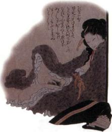 page viii: A solitary woman fondles her Jade Gateway. Shunga painting on paper, Meiji, Japan, circa late eighteenth century.