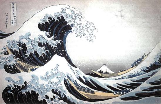 The Wave of Bliss. From the "36 Views of Fuji" by Hokusai, circa 1820, the "Great Wave of Kanagawa," Japan.