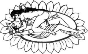 The myths of Hinduism tell us that the son of Vishnu and Lakshmi is the Love god, Kama. A kind of Indian Cupid, he shoots arrows made of flowers on a bow made from flowers and bees. Symbolic of the senses and the erotic play, this account of the "birds and bees" is an interesting variation on the Western concept. Kama is extremely handsome, as Shiva granted him the gift of eternal youth and beauty. Kama embodies the love of Vishnu and Lakshmi; often pictured riding on a dove, he has the cuckoo and bee as his allies. He is especially remembered during Springtime and at the moment of ritual lovemaking. It is Kama who is evoked in the hearts of lovers; the Kama Sutra is his song, the "Melody of Love."
