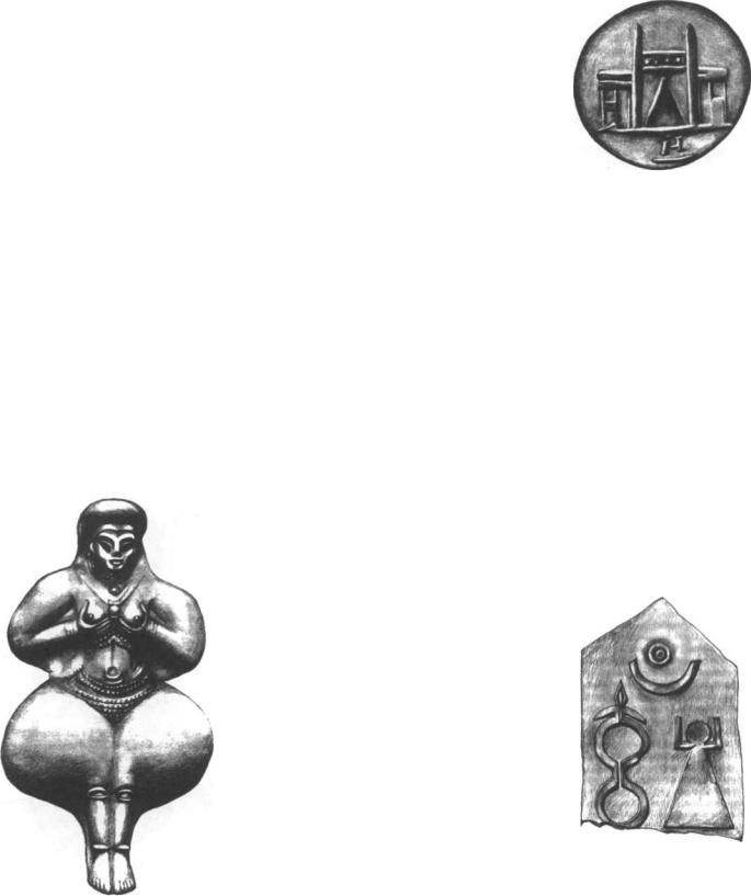 Aphrodite's Phoenician temple at Paphos, Cyprus, showing the sacred black meteorite cone worshipped as the Yoni of the goddess. From a Cypriote coin of the Imperial Roman period, Cyprus Museum, Nicosia.