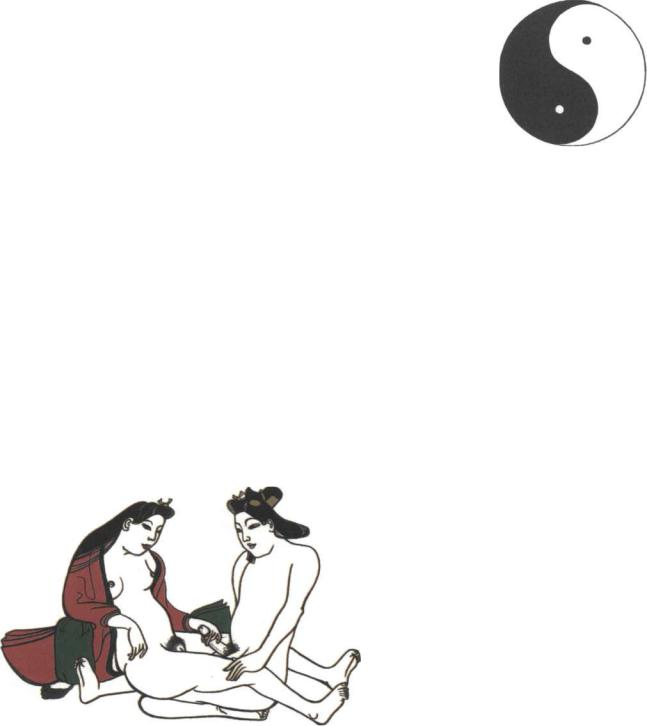 a single intent, they should embrace and kiss, suck tongues, press close, and caress each other's ears and head. Soothing above and stimulating below, the many coquetries are revealed. Then the woman should take his Jade Stalk in her left hand, while he strokes her Jade Gate with his right; moved by the life-force of the female element, his Jade Stalk becomes excited; stimulated by the lifeforce of the male element, her Jade Gate begins to bubble over, like a stream flowing into a valley. When this point is reached, harmonization of mood has been attained.