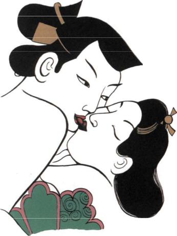In the Orient kissing is considered an erotic art form. From a woodblock print of the seventeenth century.