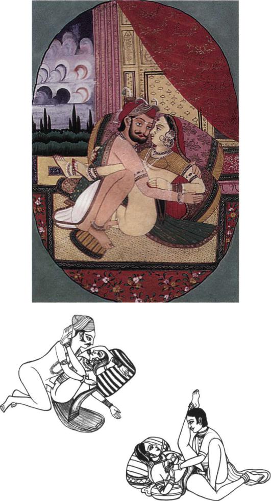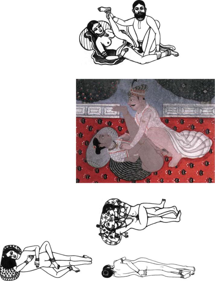 (Pleasures of Woman). The different lovemaking postures are systematized quite effectively into six categories. These are, first, with a woman on her back in a supine position; second, with the woman lying on her left or right side; third, the various sitting postures; fourth, the standing positions; fifth, with the woman prone, on her stomach; and sixth, with the woman on top, acting the part of the man.