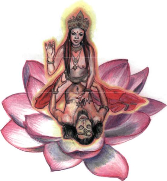 The Goddess is here to unite flesh and spirit. Shakti and her consort exploring the secrets. From a contemporary photograph.