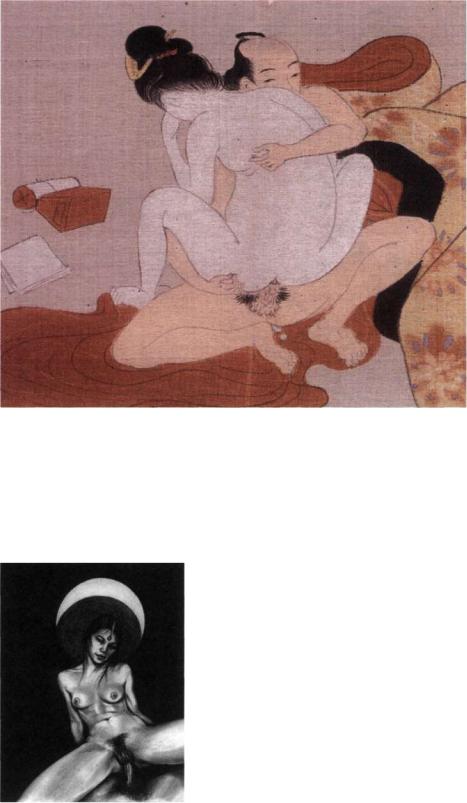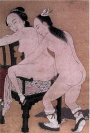 The Nine Spirits of Woman can be easily known by studying their symptoms. If a woman breathes deeply and swallows the saliva that she is profusely secreting, then it is her lung spirit that is aroused. If she starts whispering loving words and kisses her partner, then it is her heart spirit that has awakened. If she holds her lover in her arms, then her spleen spirit has come to life. If her Sexual Cavern becomes moist and slippery, then her kidney spirit is excited. If she begins to suck her partner's tongue, then her bone spirit is animated. If she hooks her partner's lower body with her feet, then her muscle spirit has arrived. If she begins to handle her lover's Jade Stalk, then her blood spirit has become stimulated. And if she caresses the nipples and chest of her beloved, then her flesh spirit has become delighted. If all these eight spirits do not arrive and harmonize, then the woman will be harmed by love-making. But if the spirits evolve in sequence, she will derive great benefits.