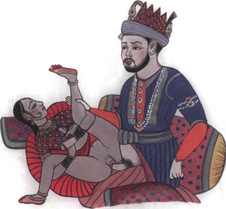 King Nadir Shah in union with a favorite concubine. From a miniature painting in the collection of the King of Nepal, circa 1830.