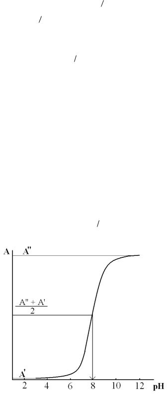 её предельными значениями A и A при низких и высоких pH. По кривой на графике при средней оптической плотности на шкале абсцисс