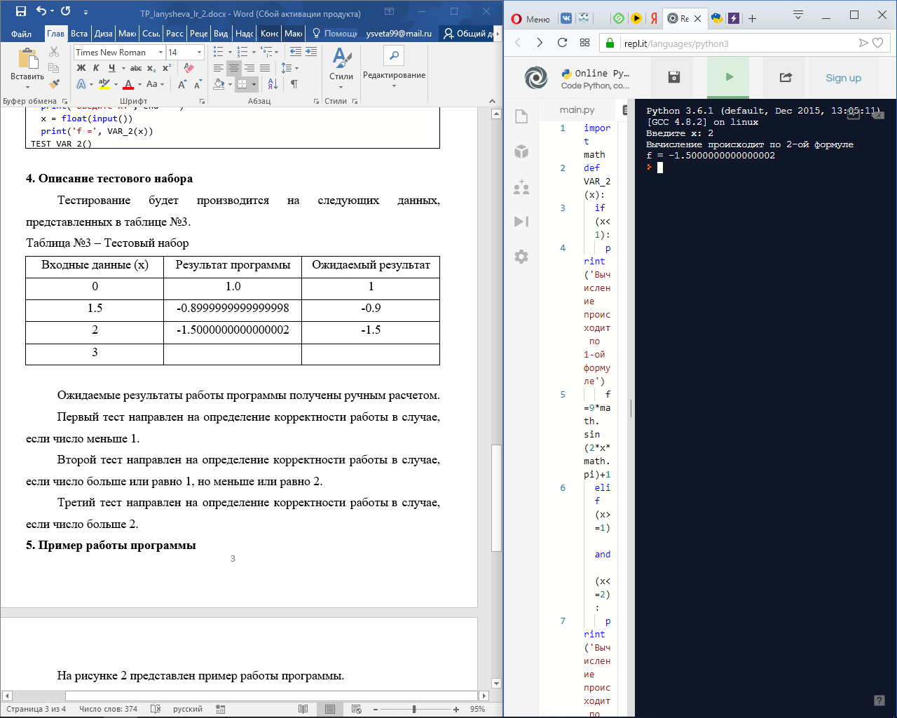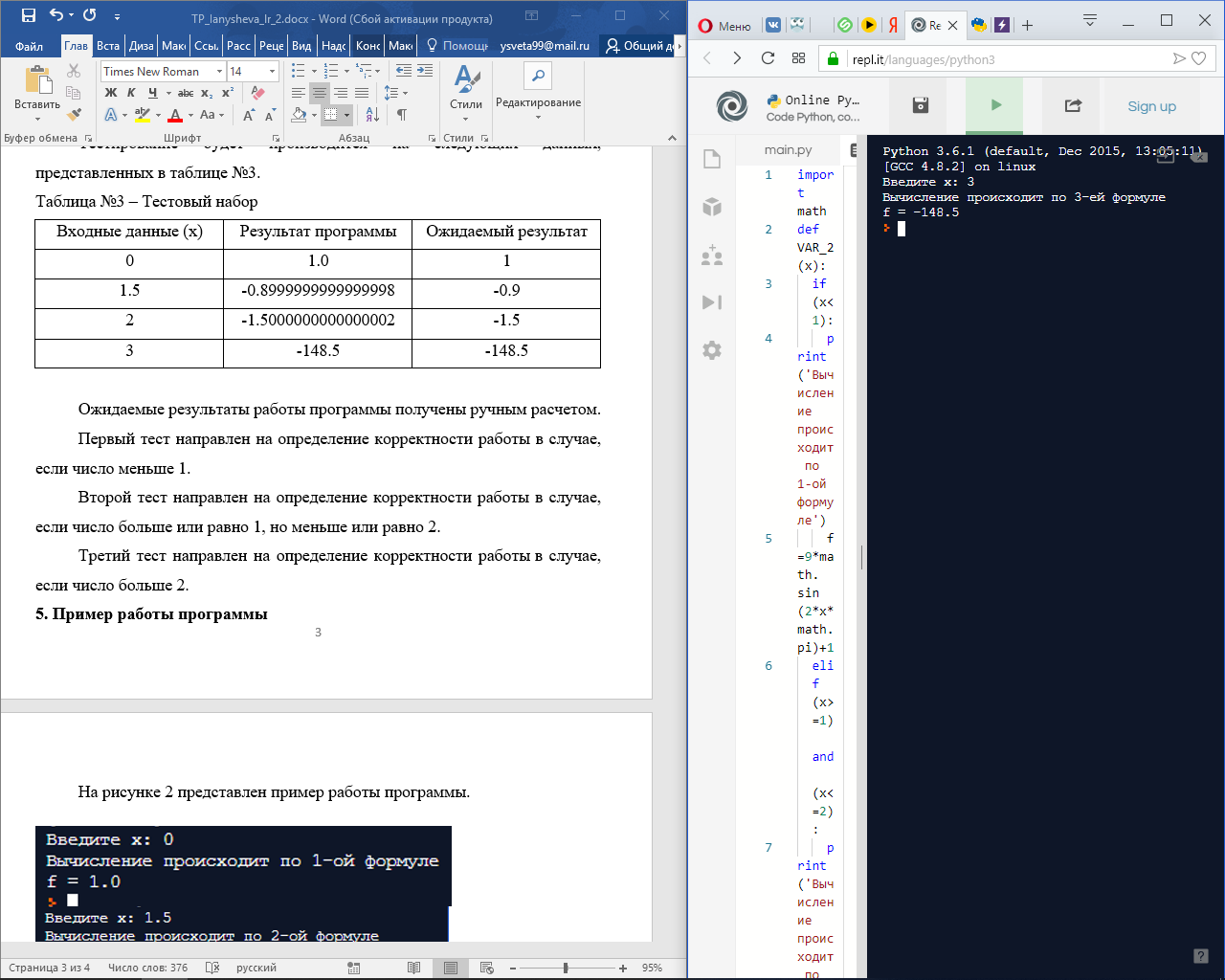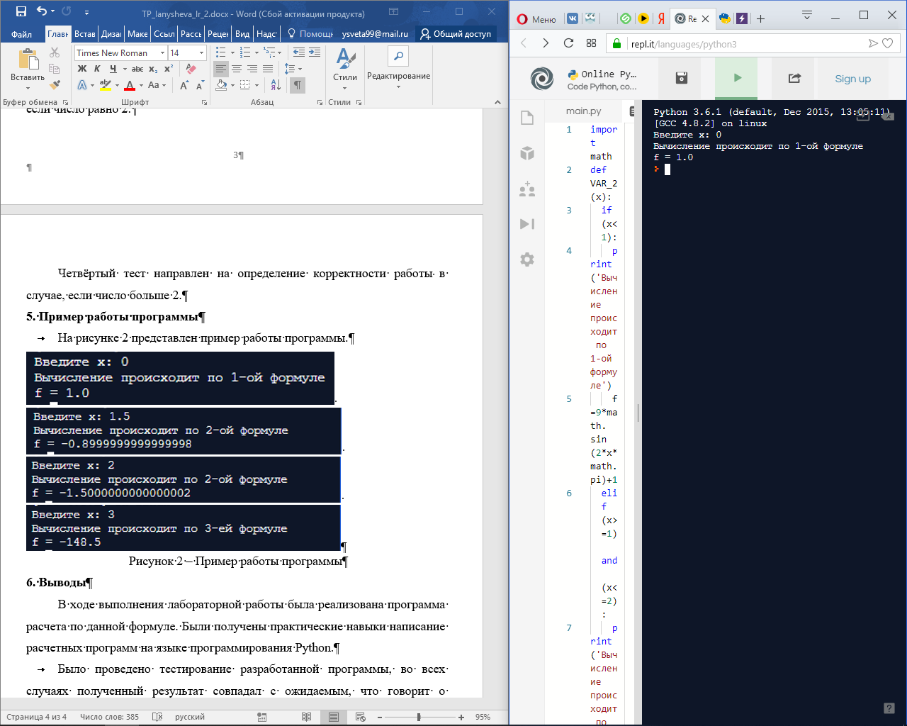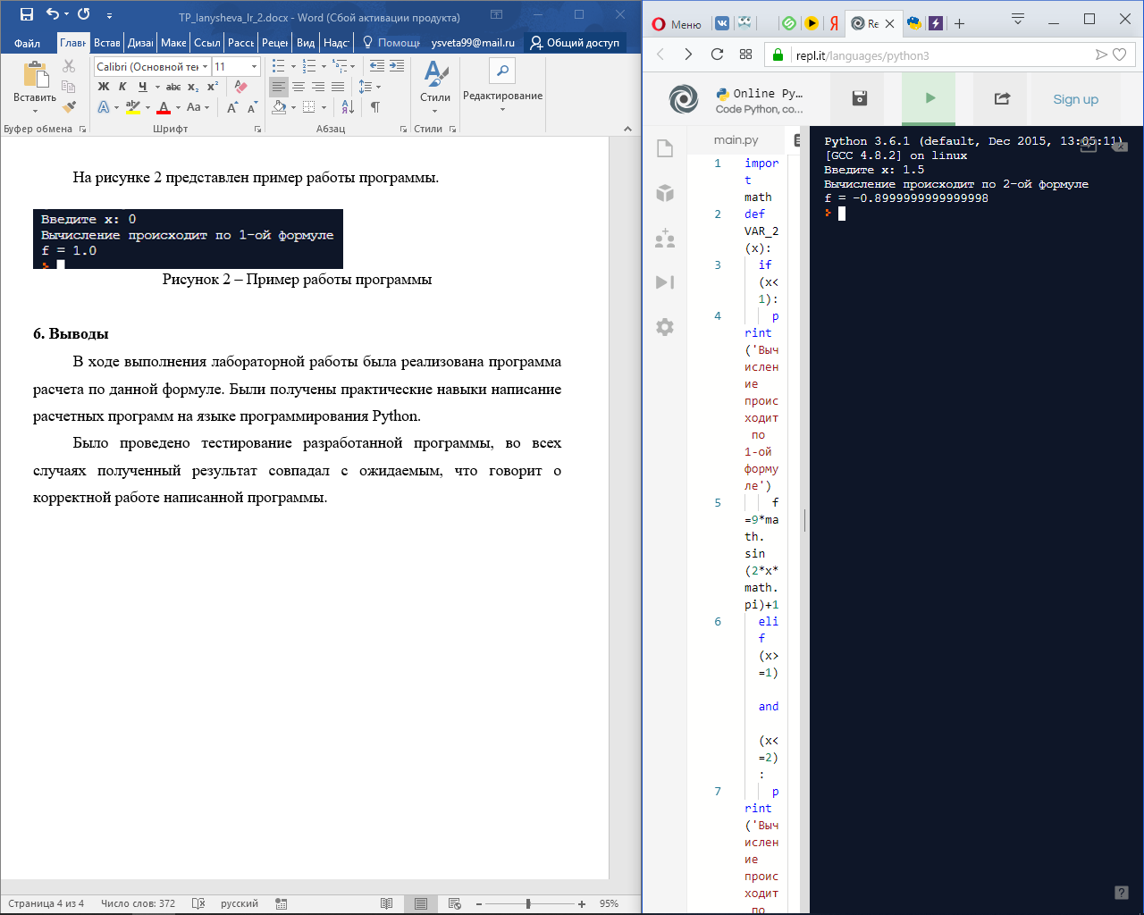 Программа вычисляет значение по формулам, приведенным в п. 2.