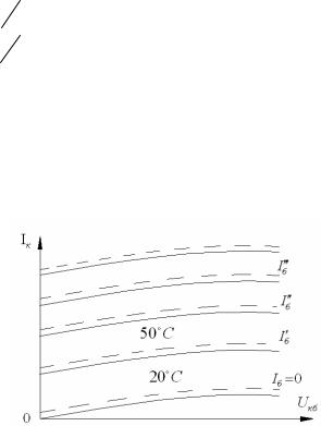 зростання струмів IКБ0 та IБрек , які спрямовані у колі бази назустріч один одному. Тому вхідні характеристики, зняті при різних температурах, перетинаються при малих струмах бази (т. IБ0 на рисунку 7.19).