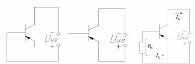 2 Електричний пробій. Оскільки переходи БТ взаємодіють між собою, то величина пробивної напруги залежить від режиму його використання. Зупинимося на прикладі схеми зі спільним емітером.