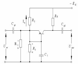 вхідного опору транзисторного каскаду. Тому подільник напруги в базовому колі вибирають з умови, щоб коефіцієнт температурної