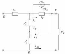CK на роботу транзистора. Дифузійна ємність увімкненого в прямому напрямі ЕП не враховується, тому що малий опір rE , як правило, в