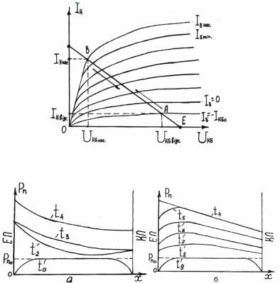 Рисунок 10.8 – Розподіл концентрації дірок у базі БТ в ключовому режимі а), б)
