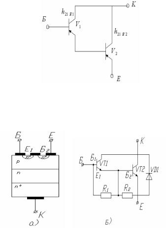 Рисунок 10.15 – Структура однокристального складеного транзистора (а) та його електрична схема (б)