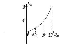режимі в кремнієвих діодах також спостерігається слабка залежність напруги від струму, що проходить. Такі прилади називають стабісторами, їх характеристика зображена на рисунку 4.4.