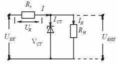 збільшенням Ur , Uвых =Uвх -Ur =const. Стабілітрон утримує