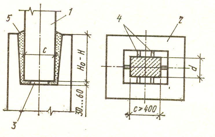 1 – колонна; 2 – стакан фундамента; 3 – армобетонная подкладка;