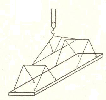 Рис. 2.18. Строповка плит покрытия восьмиветвевым стропом.